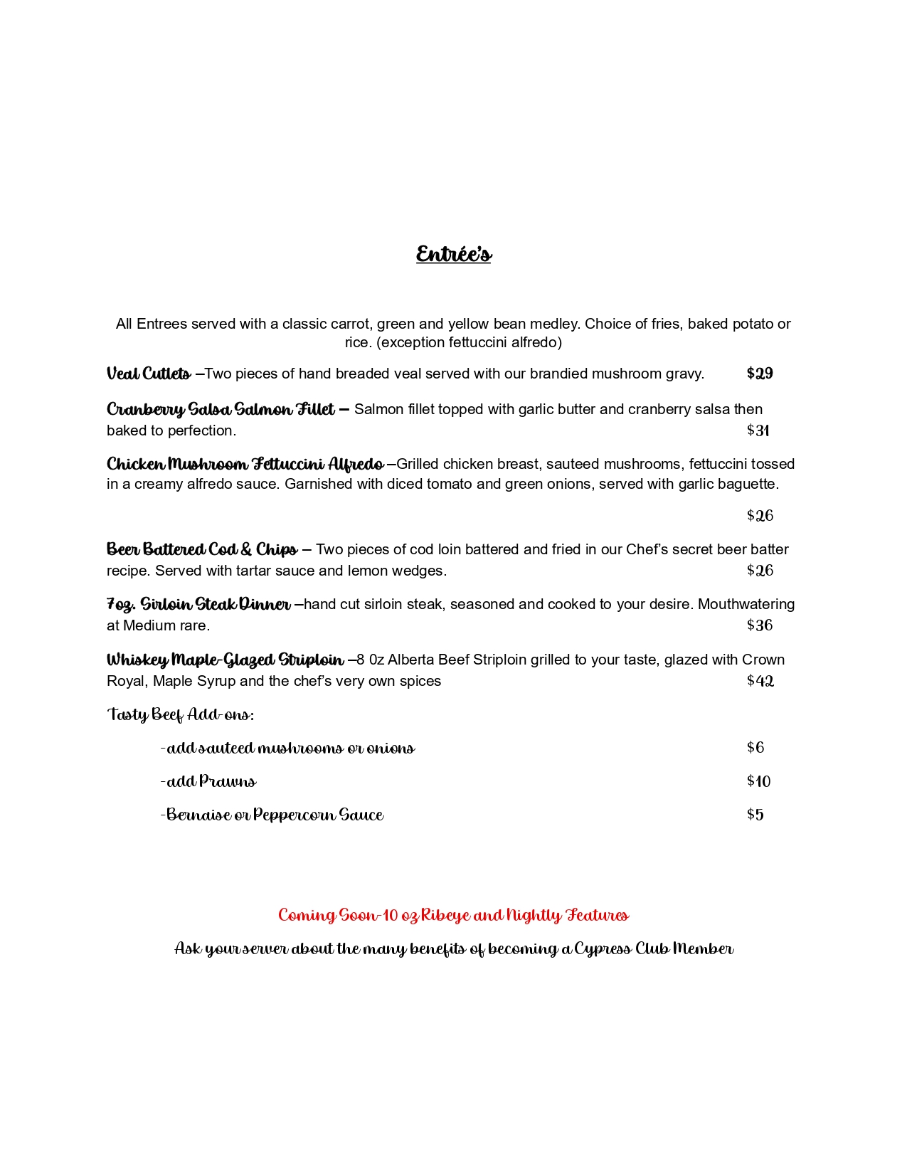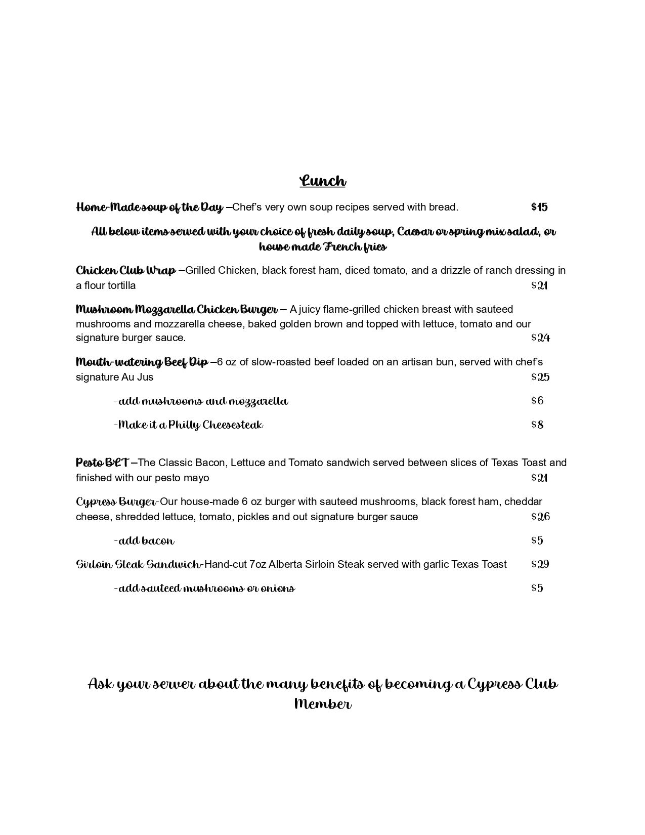 Cypress club has great food, and even better Staff! They've made me feel so welcome. Thanks guys! Can't wait to be back.